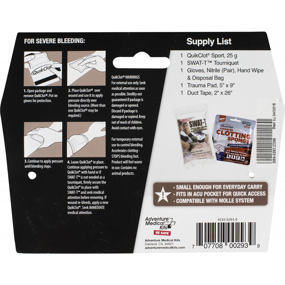 You simply apply QuikClot over bleeding areas to speed clotting. Swat-T Tourniquet is engineered for use in the field and allows a rapid means to control extremity bleeding, quickly and easily with its Swat-T (Stretch, Wrap and Tuck Tourniquet) technology. Individuals can quickly apply it in seconds with little or no prior medical training.